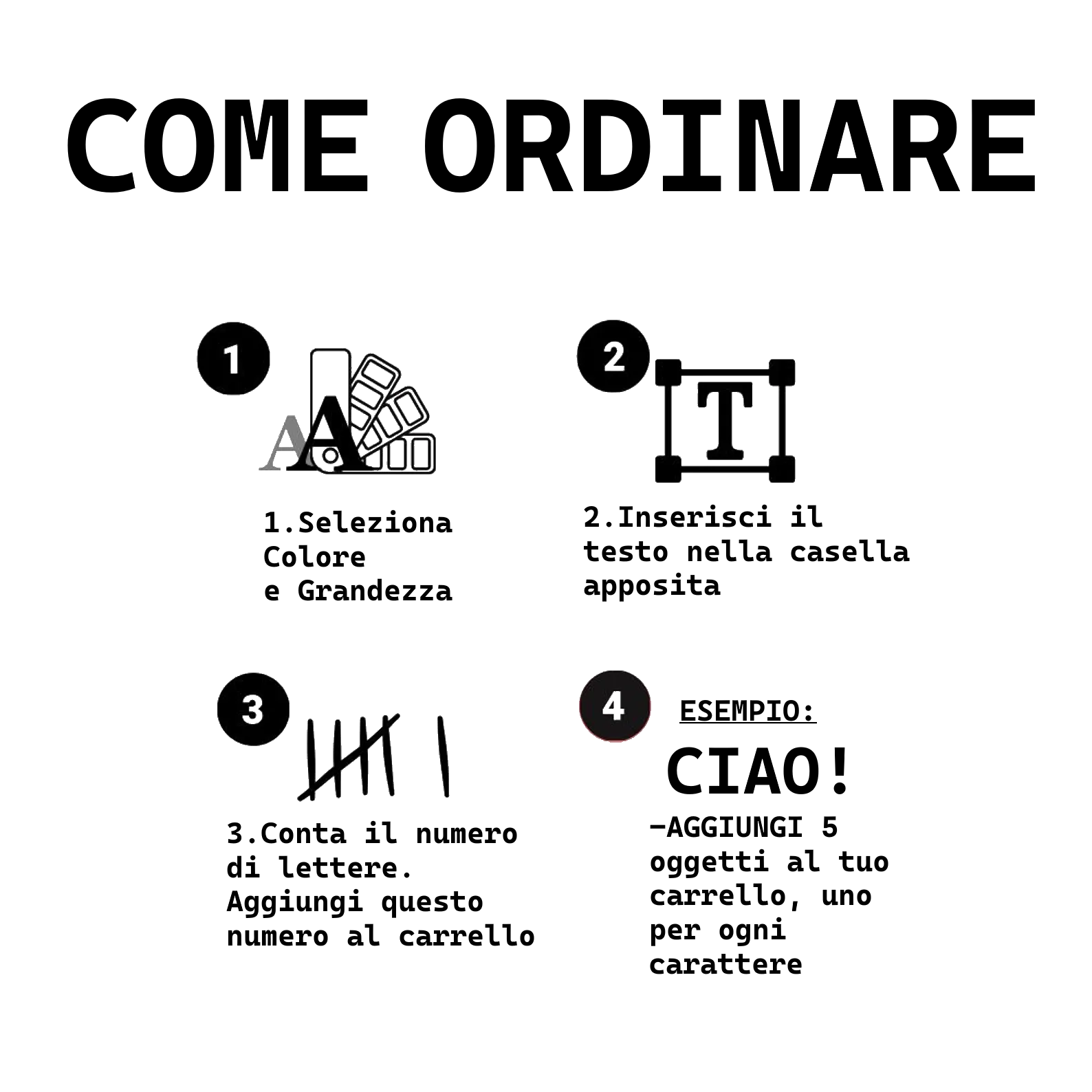 ✨ Desideri un colore, un carattere o una dimensione diversi? Inviaci un messaggio: lo realizzeremo!
